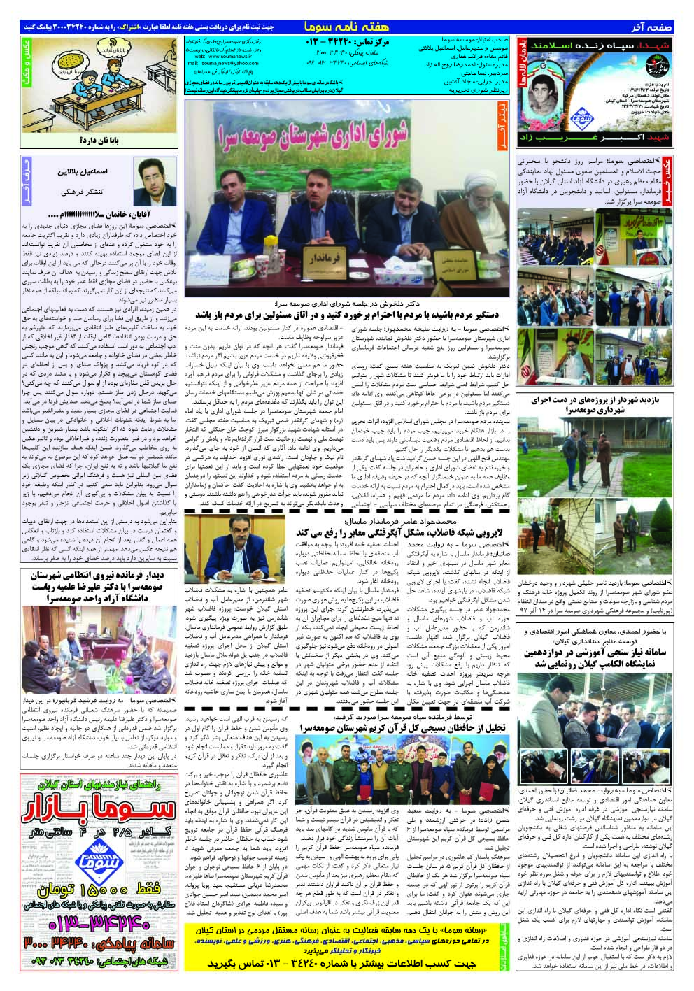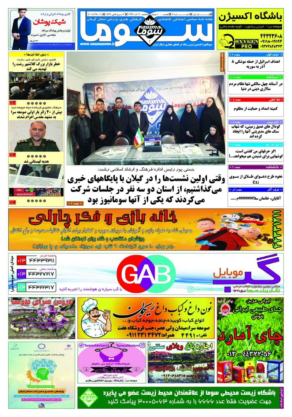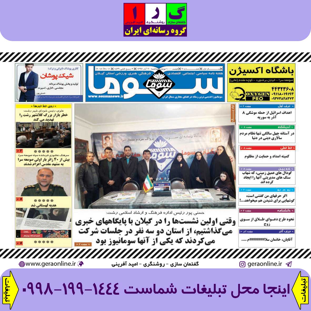 شماره ۷ هفته نامه سوما در ۲۰ آذر ۱۳۹۷ برای استان گیلان منتشر شد