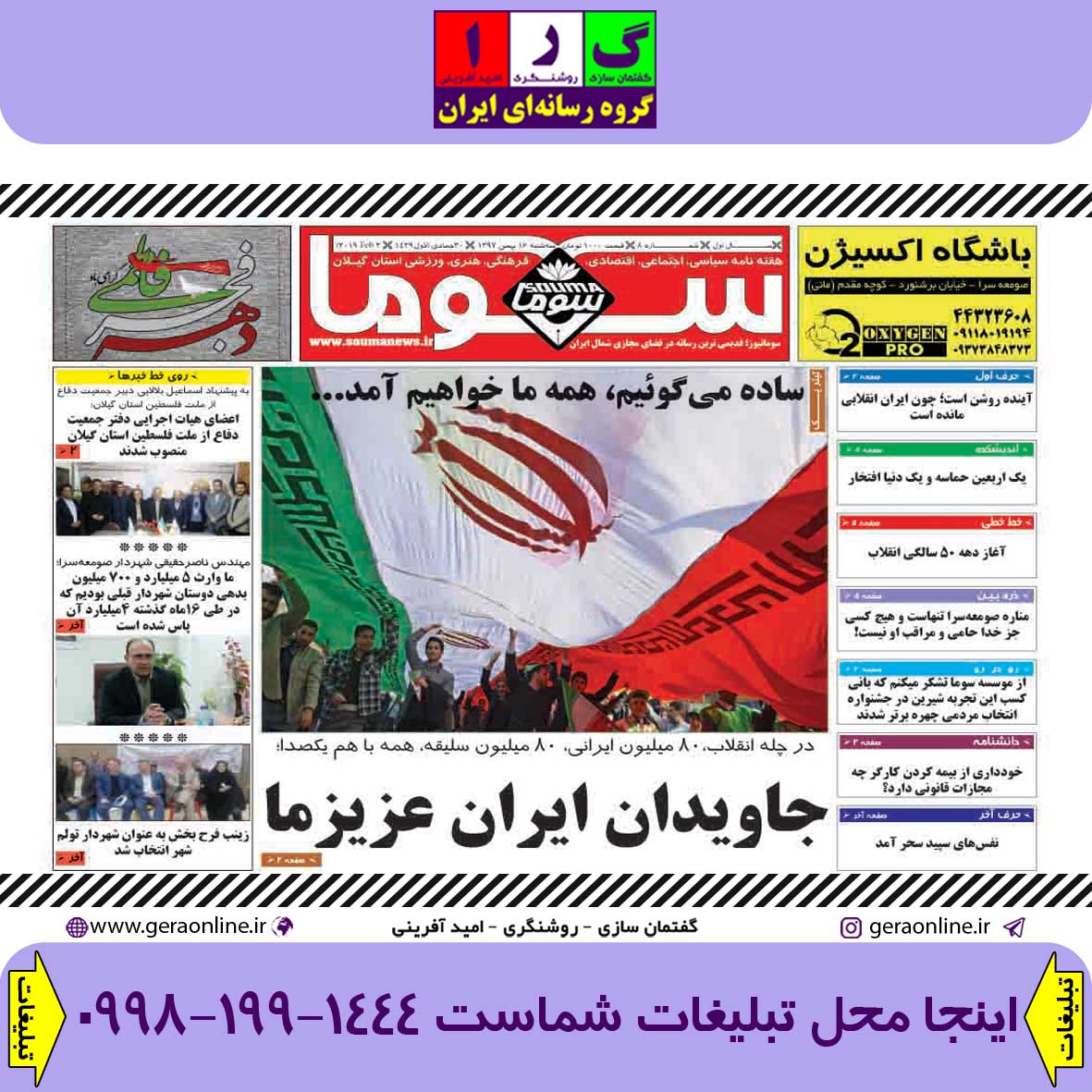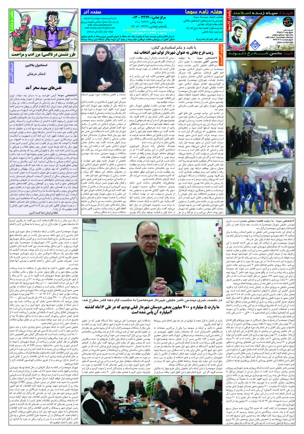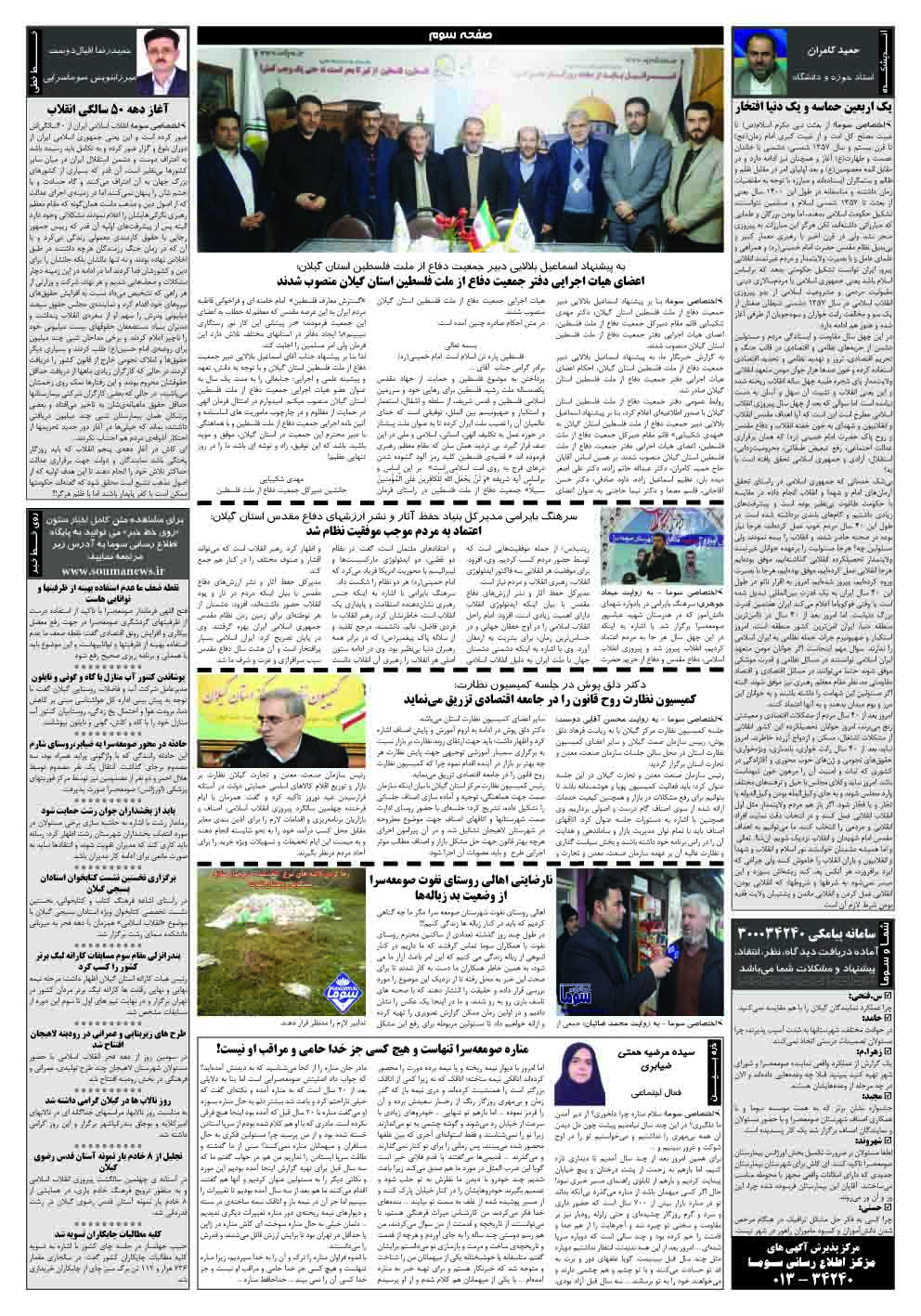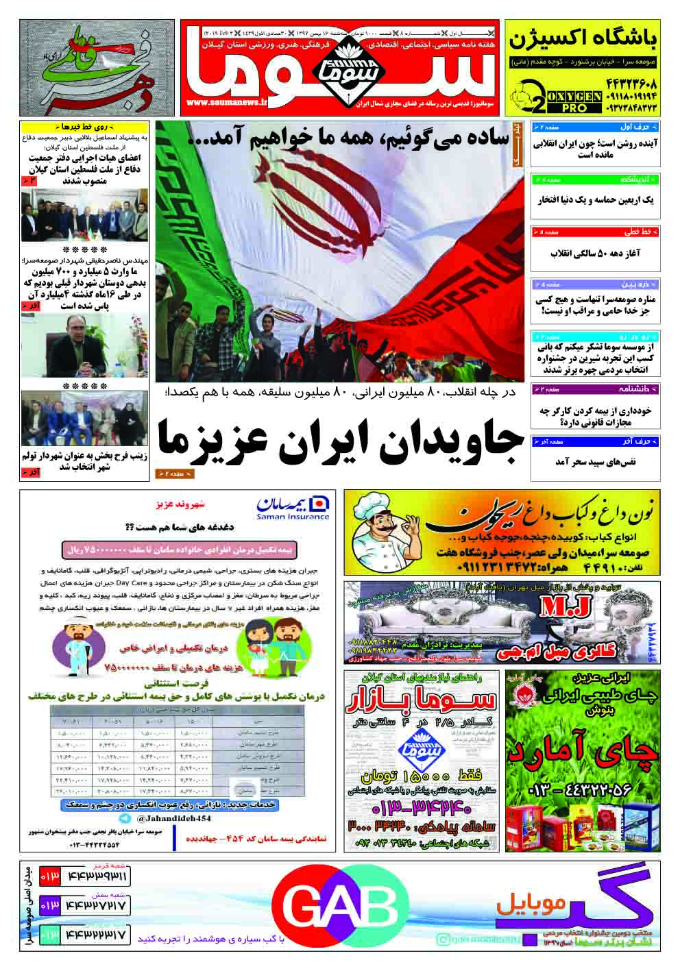 شماره ۸ هفته نامه سوما در ۱۶ بهمن ۱۳۹۷ برای استان گیلان منتشر شد