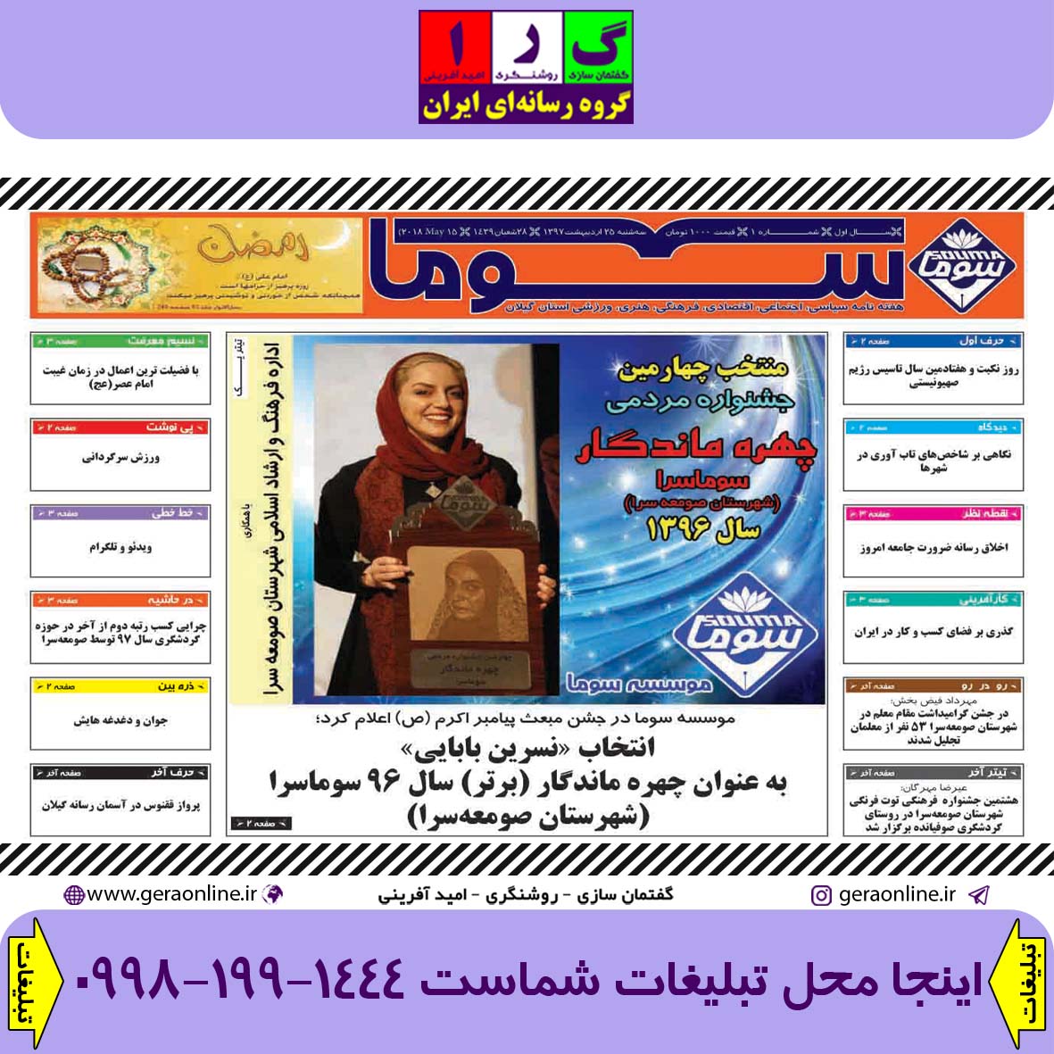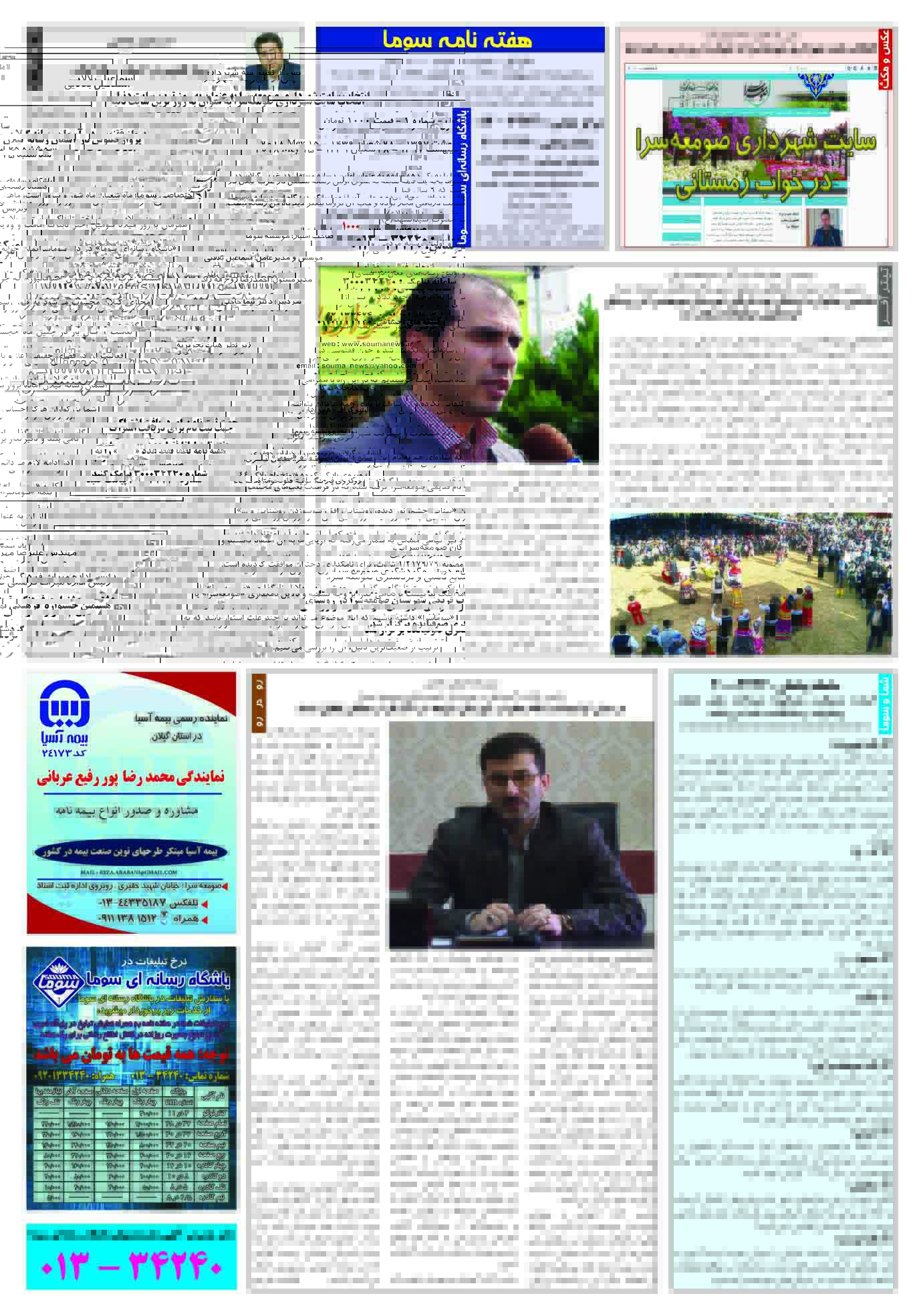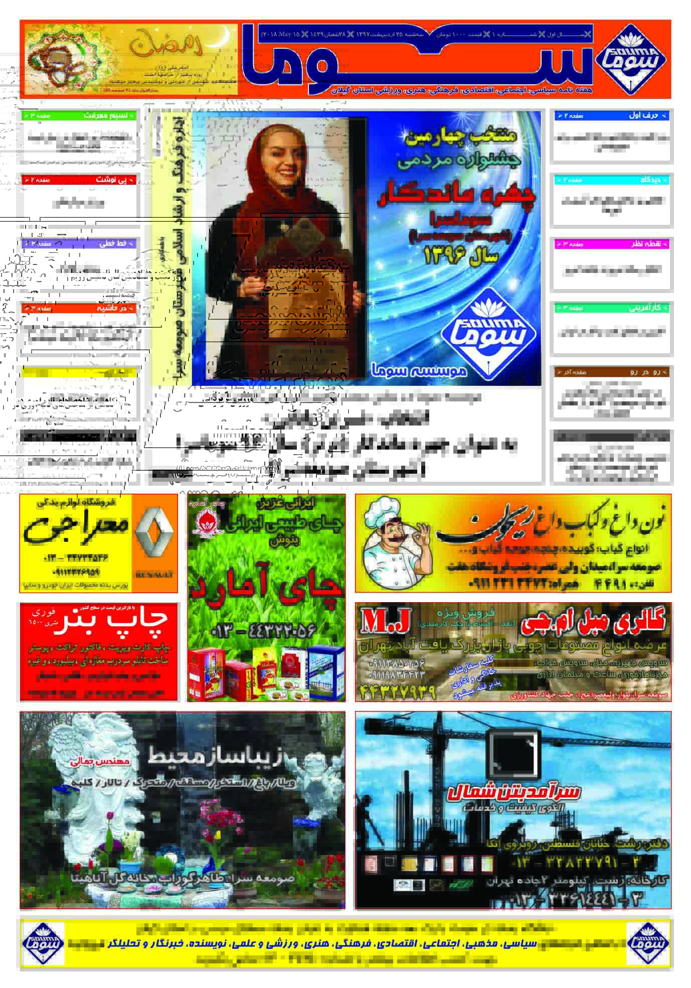 شماره اول هفته نامه سوما در ۲۵ اردیبهشت ۱۳۹۷ برای استان گیلان منتشر شد