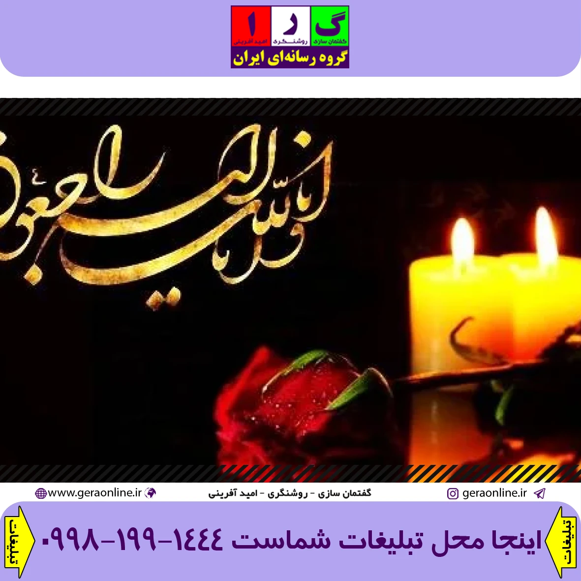 پیام تسلیت گروه رسانه ای ایران – گرا در پی درگذشت پدر همسر دکتر مهدی پارسا رییس سازمان بسیج رسانه استان گیلان